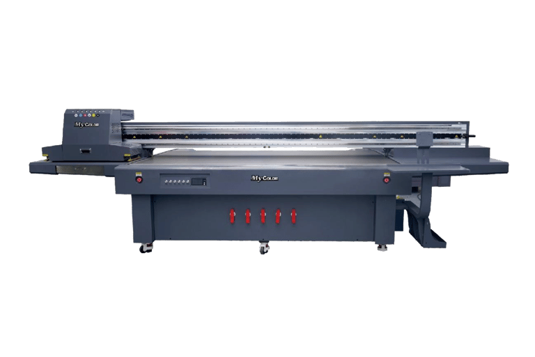 The MYCOLOR 2513 UV Flatbed Printer is a high-performance digital printing solution designed for versatility and precision. Featuring advanced Epson or Ricoh printheads, it delivers ultra-high-resolution prints with vibrant colors, sharp details, and smooth gradients. The large 2500mm x 1300mm print area allows for direct printing on a wide range of rigid and flexible materials, including acrylic, glass, metal, wood, ceramics, PVC, and leather. Equipped with CMYK+W+V ink configuration, the printer supports white ink for high-opacity prints and varnish for gloss or textured finishes. Its LED UV curing system ensures instant drying and long-lasting durability, making it ideal for signage, packaging, and custom décor applications.